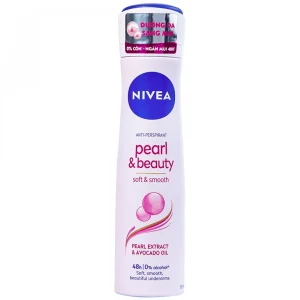 Xịt khử mùi Nivea Anti-Perspirant Pearl and Beauty 150ml thuộc dòng sản phẩm khử mùi hôi cơ thể do Nivea nghiên cứu và phát triển. Nivea là một cái tên không còn xa lạ đối với nhiều tín đồ yêu thích làm đẹp. Thương hiệu mỹ phẩm này trực thuộc tập đoàn Beiersdorf AG Hamburg (Đức). Nivea Anti-Perspirant Pearl and Beauty có công thức chiết xuất ngọc trai và lá thìa canh, giúp ngăn tiết mồ hôi hiệu quả, giảm mùi khó chịu và làm sáng mịn vùng da dưới cánh tay. Đồng thời, sản phẩm còn giúp làm mềm lông, hạn chế tình trạng đau rát khi nhổ hoặc cạo.