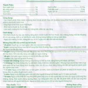 Nước súc miệng Boni-Smok làm thay đổi mùi vị thuốc lá khi hút, giúp bạn sớm bỏ thuốc lá (250ml)