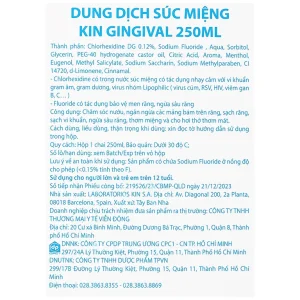 Dung dịch súc miệng Kin Gingival 250ml hỗ trợ chăm sóc nướu, ngăn ngừa các mảng bám trên răng