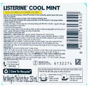 Nước súc miệng Listerine Cool Mint bảo vệ khoang miệng suốt 24h khỏi vi khuẩn hôi miệng, mảng bám, viêm nướu (250ml)