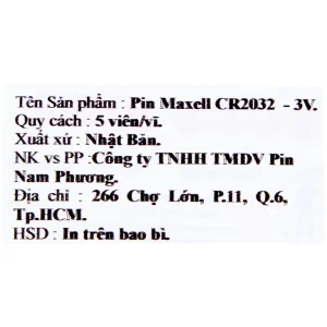 Pin Maxell Lithium CR2032 – 3V cung cấp điện năng ổn định cho thiết bị (20 vỉ x 5 viên)