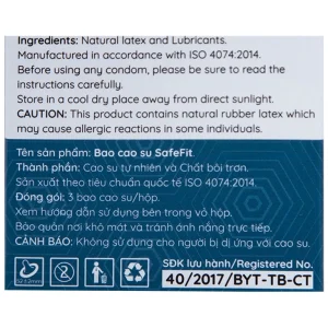 Bao cao su Safefit 003 S52 siêu mỏng, không gây kích ứng, có chất bôi trơn (12 cái)