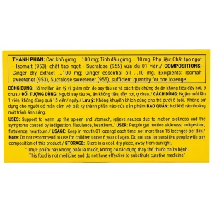 Viên ngậm gừng không đường VietNat hỗ trợ làm ấm tỳ vị, giảm nôn, ăn không tiêu đầy hơi (5 vỉ x 4 viên)