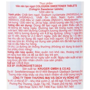 Viên nén tạo ngọt Cologrin Sweetener Tablets Kruger cho người tiểu đường, béo phì, tăng huyết áp (1200 viên)
