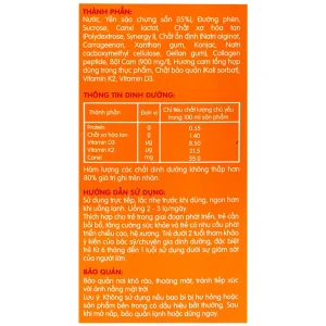 Nước yến sào cao cấp Nunest Kid Grow vị cam hỗ trợ phát triển hệ xương, tăng cường sức khỏe (6 lọ x 70ml)