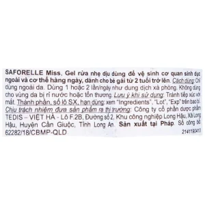 Gel rửa nhẹ dịu Saforelle Miss dùng vệ sinh cơ quan sinh dục ngoài và cơ thể cho bé (100ml)