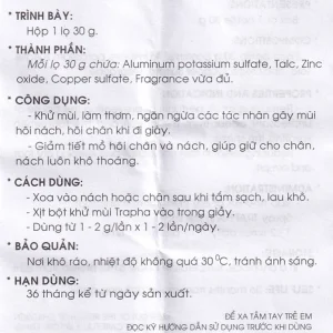 Bột khử mùi Trapha Traphaco hỗ trợ khử mùi, làm thơm, ngăn ngừa mùi hôi nách, hôi chân khi đi giày (30g)