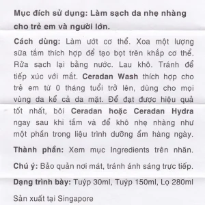Sữa tắm Ceradan Moisturising Wash 280ml dùng cho mọi vùng da kể cả da mặt