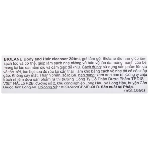 Gel tắm gội Biolane dịu nhẹ làm sạch tóc và cơ thể cho bé (200ml)