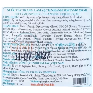 Nước tẩy trang Softymo Speedy Cleansing Liquid Kosé làm sạch nhanh lớp trang điểm trên da (230ml)