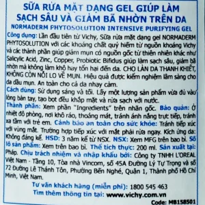 Sữa rửa mặt dạng gel giúp làm sạch sâu và giảm bã nhờn trên da Vichy Normaderm Phytosolution Intensive Purifying Gel (200ml)