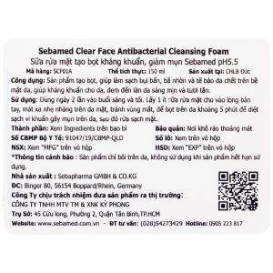 Sữa rửa mặt Clear Face Antibacterial Cleansing Foam Sebamed giúp làm sạch bụi bẩn, bã nhờn và tế bào da chết (150ml)