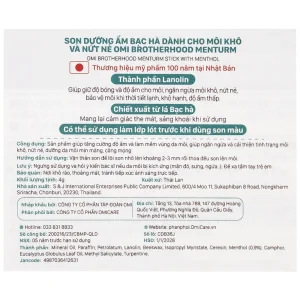 Son dưỡng ẩm bạc hà Omi Brotherhood Menturm giúp tăng cường độ ẩm và làm mềm vùng da môi (4g)