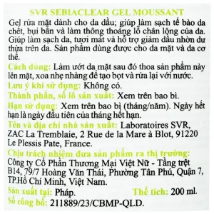 Gel rửa mặt SVR Sebiaclear Gel Moussant 200ml làm sạch không chứa xà phòng và loại bỏ tế bào da chết