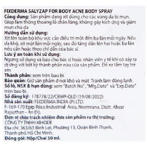 Xịt trị mụn Fixderma Salyzap for Body Acne Body Spray làm thông thoáng lỗ chân lông (50ml)