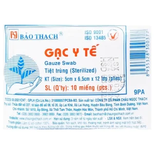 Gạc y tế tiệt trùng 5cm x 6.5cm x 12 lớp Bảo Thạch sơ cứu vết thương, thấm máu và dịch tiết (100 gói)