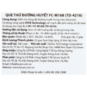 Que thử đường huyết FaCare FC-M168 (TD-4216) kiểm tra nồng độ đường huyết trong máu (25 cái)