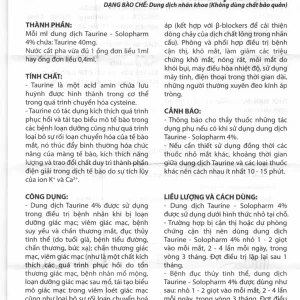 Dung dịch nhãn khoa Taurine-Solopharm 4% điều trị loạn dưỡng giác mạc, viêm giác mạc (20 tuýp x 1ml)