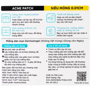 Miếng dán mụn ban ngày DermaAngel hút mụn nhanh chóng và làm lành vết thương sau mụn (12 miếng x 15g)