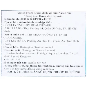Dung dịch xịt mũi Nasodren Hartington làm sạch mũi, xoang, giảm triệu chứng viêm xoang cấp tính và mãn tính (50mg)