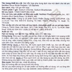 Muối rửa mũi Neilmed Sinus Rinse Kids giảm và ngăn ngừa các chứng viêm mũi dị ứng cho trẻ (120 gói)