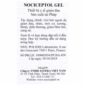 Gel bôi ngoài da Nociceptol Gel giảm đau, nhức, mỏi cơ, xương, khớp, chấn thương, giảm bầm tím, sưng nề (60ml)