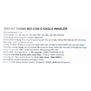 Ống hít thông mũi con ó Eagle Inhaler 1.1g thông mũi, giảm nghẹt mũi (12 ống)