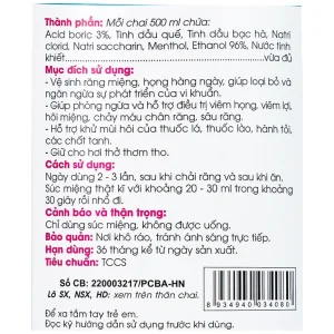 Nước súc miệng T-B Traphaco 500ml vệ sinh răng miệng, họng, ngừa viêm họng, thơm miệng, sạch răng