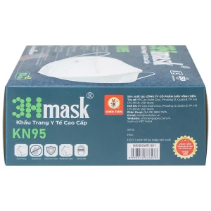 Khẩu trang y tế cao cấp KN95 3Hmask Vĩnh Tiến màu trắng hỗ trợ ngăn khói, bụi, kháng khuẩn (12 cái)