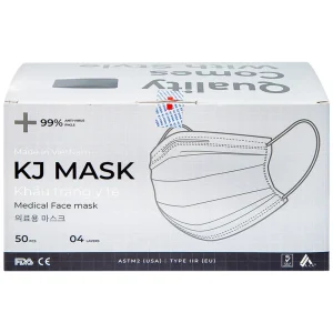 Khẩu trang y tế KJ Mask màu trắng 4 lớp hỗ trợ ngăn khói, bụi, kháng khuẩn (50 cái)
