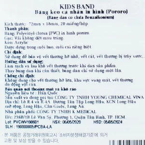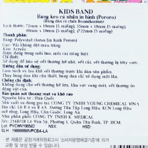 Băng keo cá nhân in hình Pororo Kids Band 72mm x 18mm Young Chemical bảo vệ vết thương dành cho trẻ nhỏ (20 miếng)