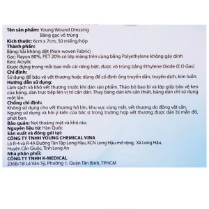 Băng gạc vô trùng Young Wound Dressing 6cm x 7cm Young Chemical hỗ trợ bảo vệ vết thương (50 miếng)