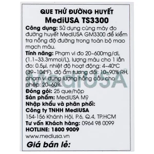 Que thử đường huyết MediUSA TS3300 dùng cho máy đo đương huyết GM3300 kiểm tra nồng độ đường trong máu (25 cái)