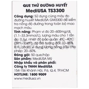 Que thử đường huyết MediUSA TS3300 sử dụng cùng máy đo đường huyết MediUSA GM3300 (50 que)