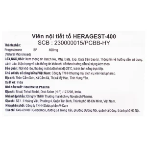 Viên nội tiết tố Heragest – 400 hỗ trợ dự phòng sảy thai, vô sinh nữ, hội chứng tiền kinh nguyệt (1 vỉ x 10 viên)