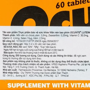 Viên nén Ocuvite Lutein Bausch & Lomb hỗ trợ tăng cường thị lực (3 vỉ x 20 viên)
