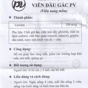 Viên Dầu Gấc PV hỗ trợ giúp làm sáng mắt, giảm khô mắt, mờ mắt, quáng gà (100 viên)