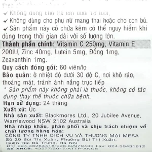 Viên uống Blackmores Macu-Vision Plus hỗ trợ chức năng mắt khỏe mạnh (60 viên)