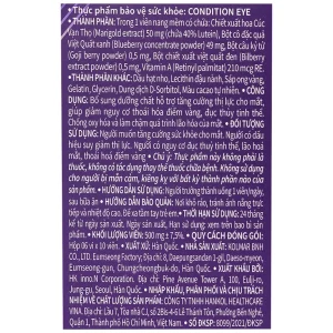Thực phẩm bảo vệ sức khỏe Condition EYE Berry Kolmar hỗ trợ tăng cường thị lực cho mắt (6 vỉ x 10 viên)