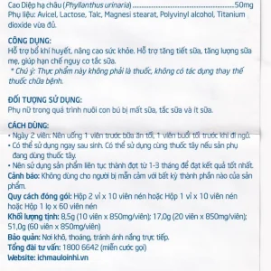 Viên uống Ích Mẫu Lợi Nhi IMC hỗ trợ tăng tiết sữa, tăng lượng sữa mẹ (2 vỉ x 10 viên)
