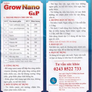 Siro Grow Nano G&P giúp trẻ phát triển hệ xương, tăng cường đề kháng (20 ống x 10ml)