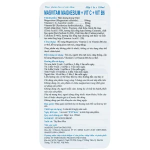 Dung dịch Masvitam Magnesium + Vit C + Vic B6 150ml bổ sung Magnesium, Vitamin C và Vitamin B6 cho cơ thể
