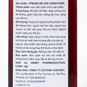 Viên uống Đông Trùng Hạ Thảo Dr Life Natural Herb Cordyceps 1500mg tăng cường sức đề kháng (60 viên)