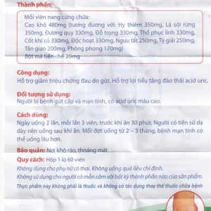 Viên Gout Tâm Bình hỗ trợ giảm triệu chứng đau do gút (60 viên)