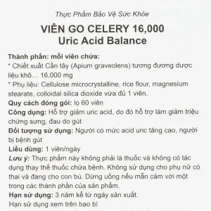 Viên uống Go Celery 16,000 hỗ trợ giảm uric acid, giảm triệu chứng sưng, đau do gout (60 viên)