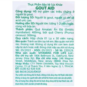 Viên uống Gout Aid Vitamins For Life hỗ trợ giảm triệu chứng ở người bị gout (30 viên)