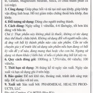 Viên uống Shark Cartilage Pharmekal giúp phục hồi và tái tạo mô sụn khớp (60 viên)