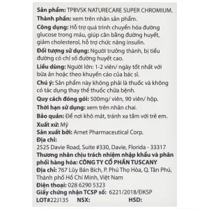 Viên uống Super Chromium 250mcg NatureCare cân bằng đường huyết, giảm cholesterol (90 viên)