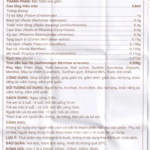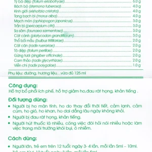 Siro Bổ Phế Nam Hà XC giảm ho, giảm đờm, đau rát họng, khàn tiếng do viêm họng (125ml)