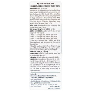 Siro Brauer Kids Manuka Honey Dry Cough hỗ trợ giảm chứng ho khan, giảm đau rát họng ở trẻ (100ml)
